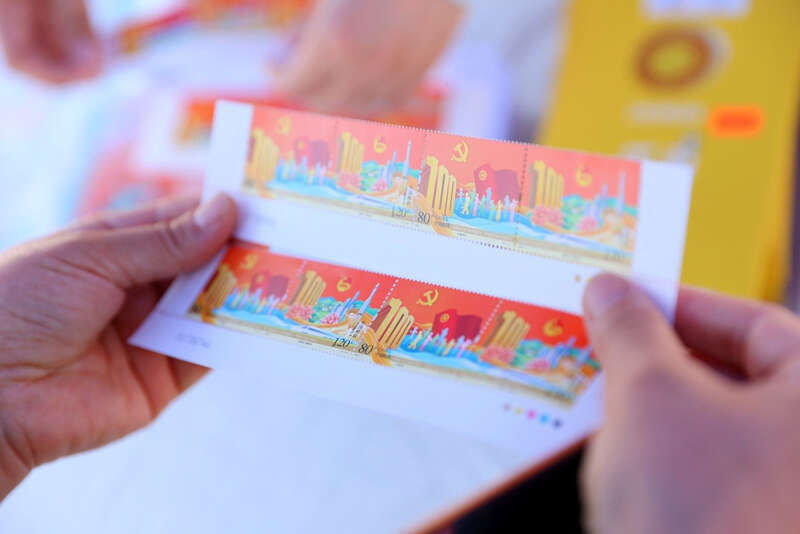 《中国共产主义青年团成立一百周年》纪念邮票“永远跟党走”图案以党徽与团旗为主体,团旗紧紧跟随着党徽,辅以数字“100”及奋斗在各行各业的青年群像剪影,突出共青团紧跟党走的政治定位。“请党放心 强国有我”图案以共青团团徽为主体,辅以数字“100”、高铁、火箭、楼宇等画面内容,寓意广大共青团员为建设繁荣祖国、实现中华民族伟大复兴贡献青春力量的壮志豪情。