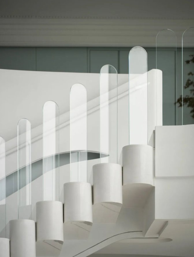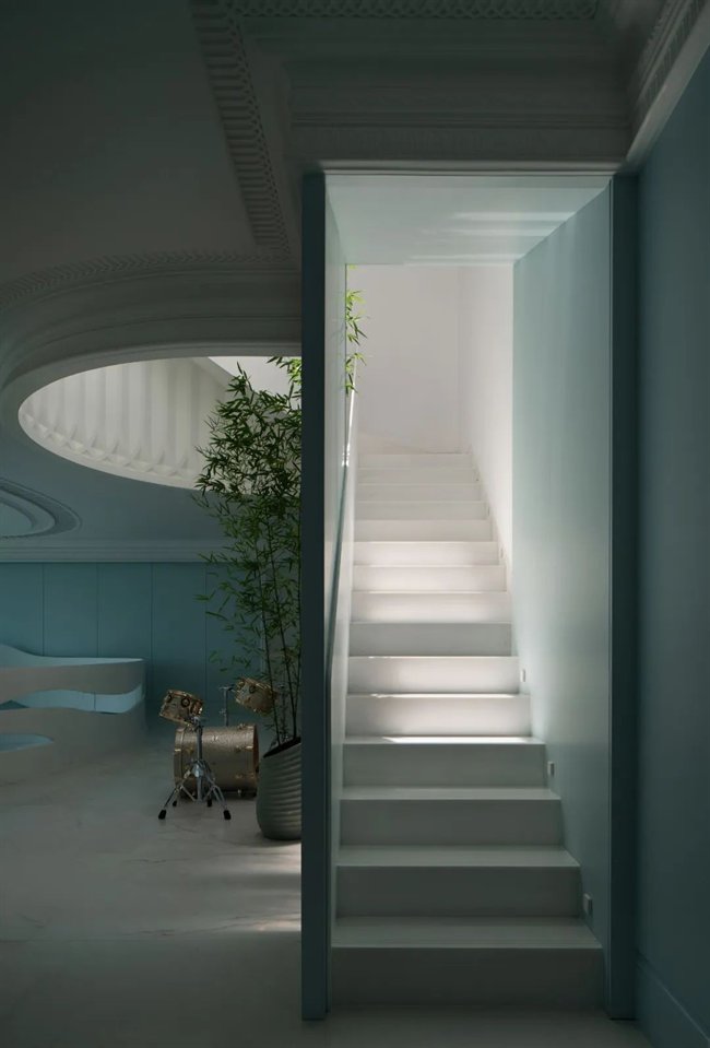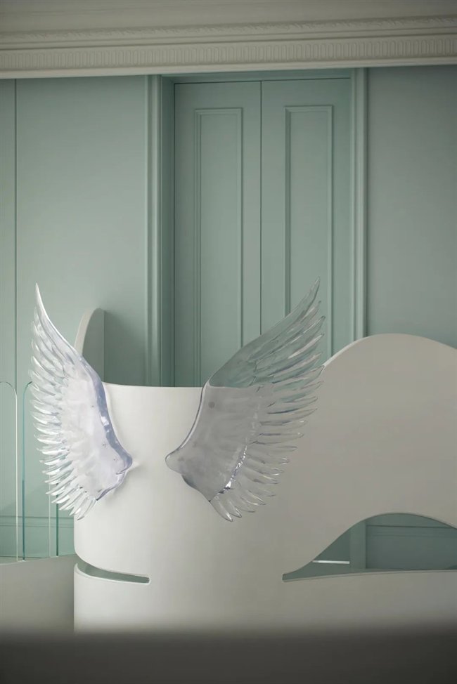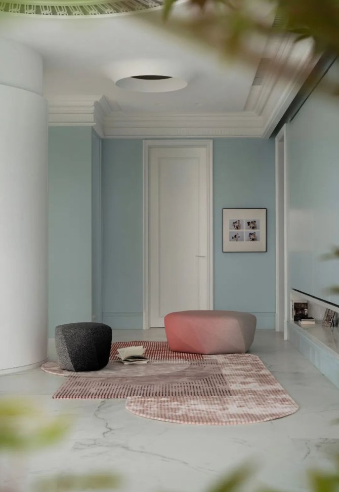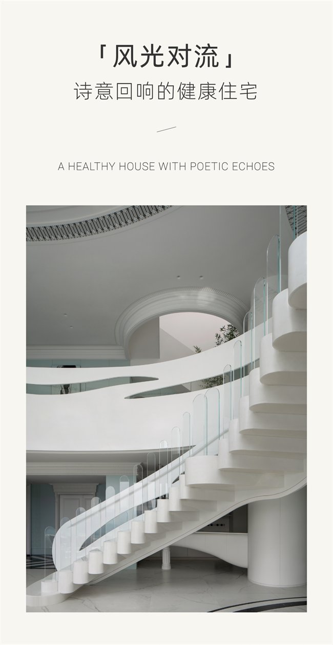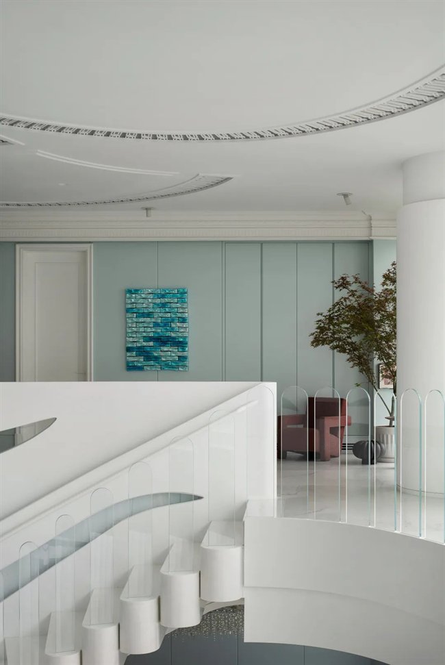 大胆而先锋的楼梯围栏、晶莹剔透的天使装置、精巧的墙饰雕花、色彩清新的健康涂料......自然的气息与艺术的深意相糅合。与此同时,设计师希望赋予每一个角落以独特的温情,流传别致的生活韵味。
