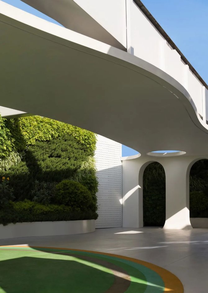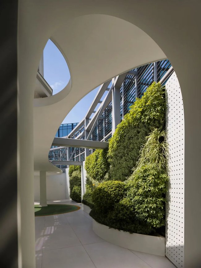 光影的游戏,在方与圆、圆弧与圆拱之间衍变,在戏剧性之外回味生活的本真。ACE DESIGN 笔下的屋顶花园,就像是都市中的方外桃源,在高楼之上构筑偶然的诗意,承载生活方式的意涵,亦协调人与人、人与动物、人与环境至纯至简的情感链接,这也是对「健康住宅体系」的丰富延展。