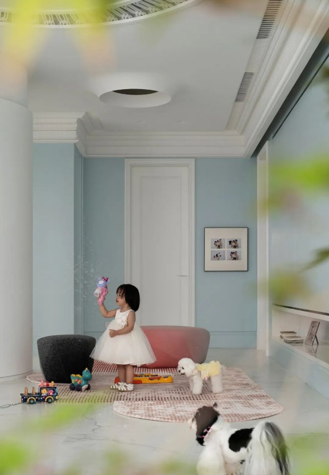 女主人希望未来的家能呈现生活品味与审美意趣,承载家人互动、自我独处、邀朋会友、亲近自然的不同需求。最终,设计师契合女主人充满柔情的精神世界,将纯粹、纯净、优雅、精致作为空间整体设计的关键词。